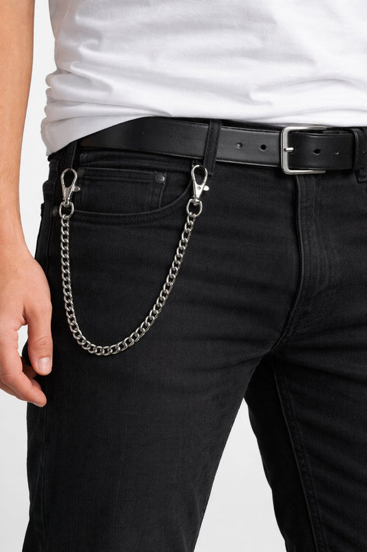 Brett läderarmband med dödskalle och kedjedetaljer – Svart