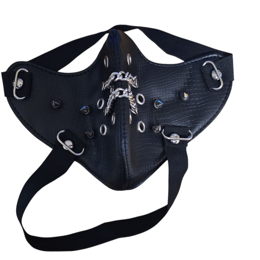 Svart ansiktsmask i reptilstruktur med kedjor, spikes & öljetter