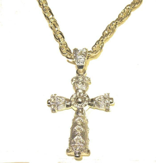 AlennusmyyntiHopeanvärinen ristikaulakoru valkoisilla kristalleilla