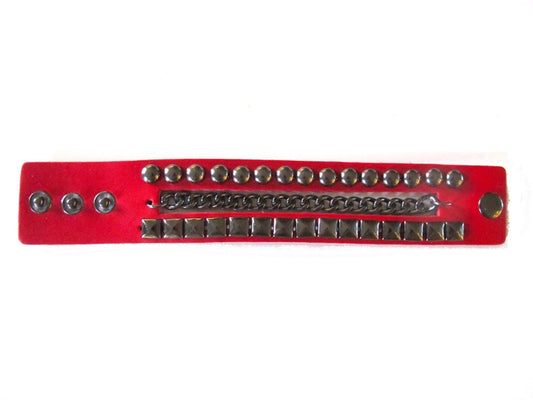 AlennusmyyntiPunainen nahkaranneke pyöreillä ja Pyramid-niiteillä