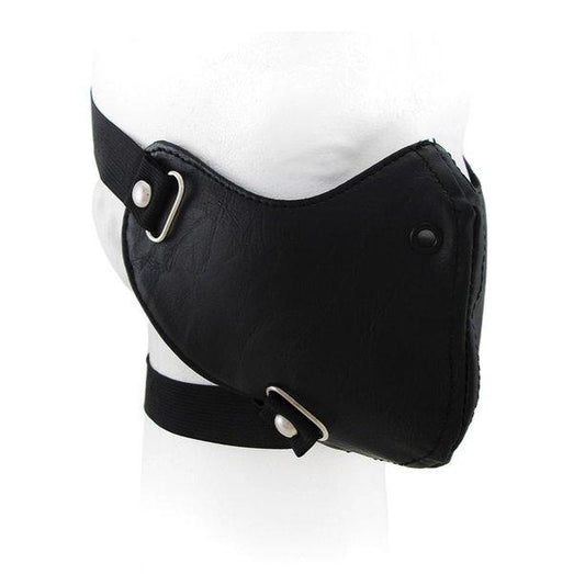 Svart ansiktsmask i konstläder med O-ringar & stavar (justerbar)