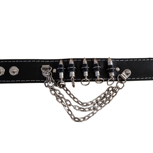 Svart nitarmband med kedjor & kulformade spetsnitar – rockigt statement
