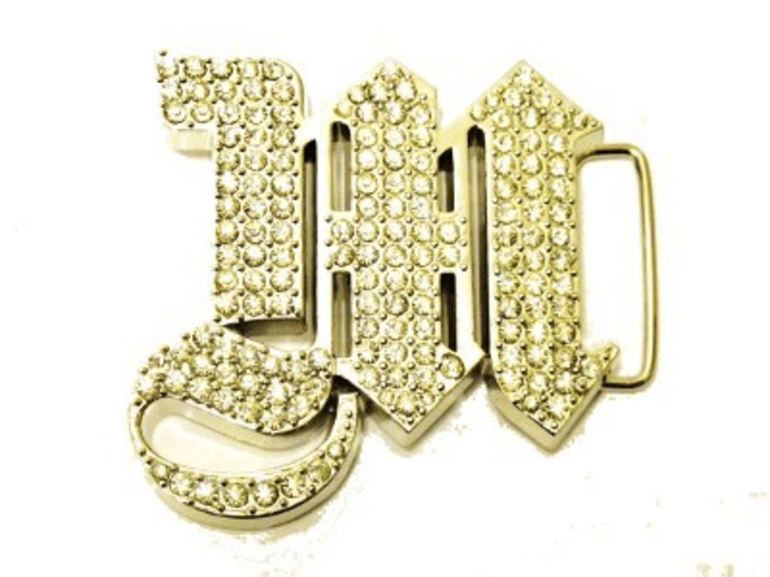 Hopeanvärinen M-kirjaimen muotoinen solki ja käsin kiinnitetyt kristallit