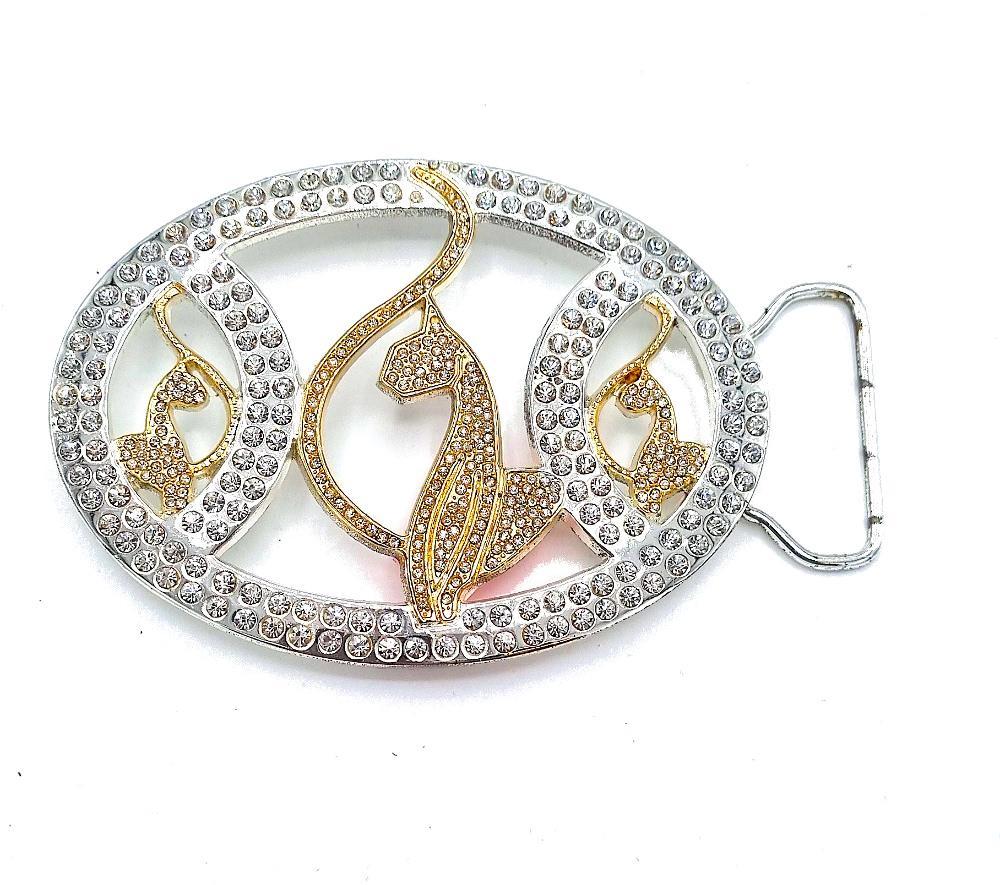 Hopean ja kullanvärinen solki valkoisilla kristalleilla