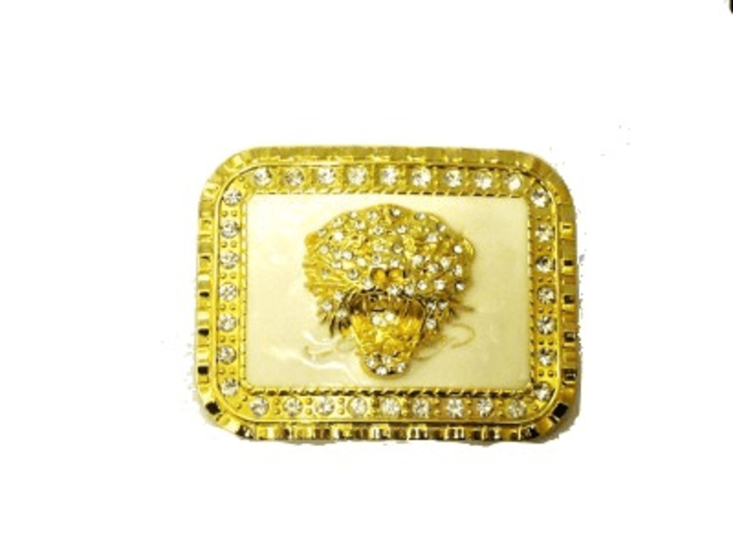 Kullanvärinen solki tiikereillä ja käsin kiinnitetyillä kristalleilla