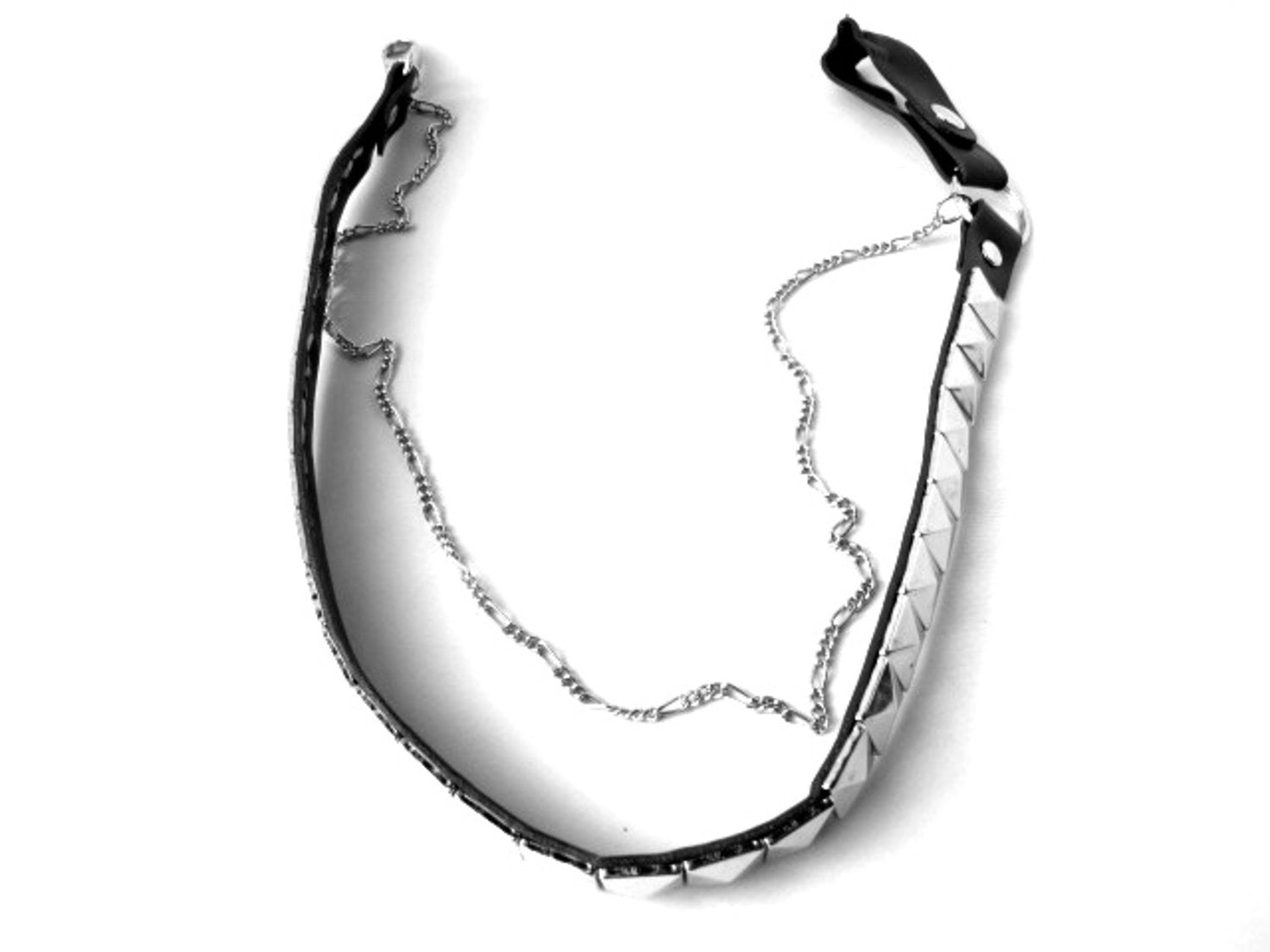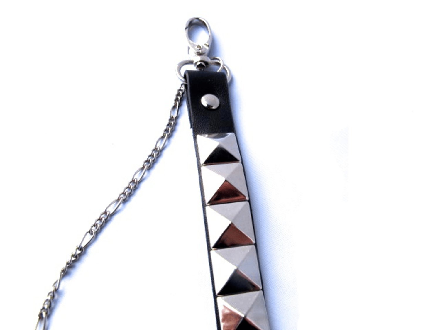 Nahkainen housuketju pyramidiniiteillä ja hopeaketjulla