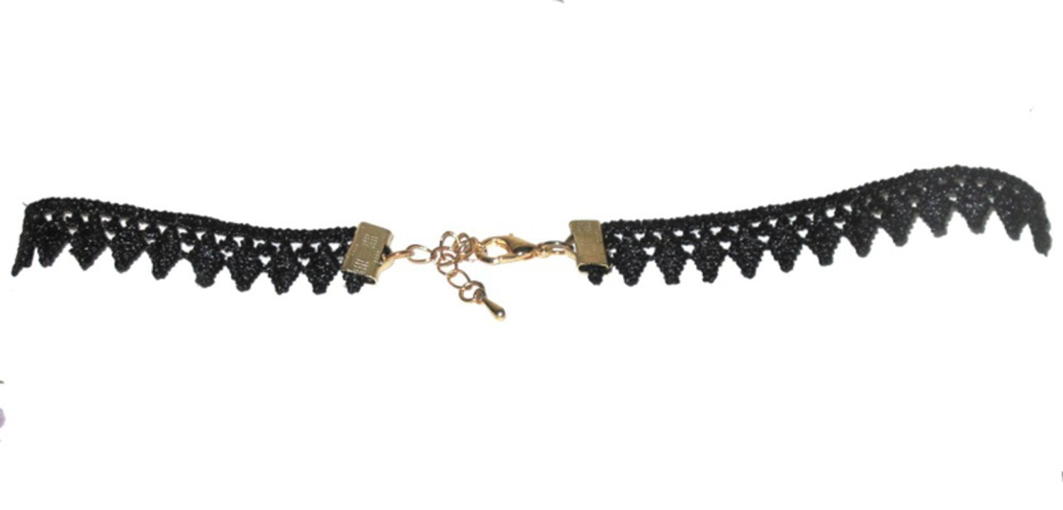 Musta kankainen kaulakoru, joka suljetaan karabiinilla, kokoa voi säätää.