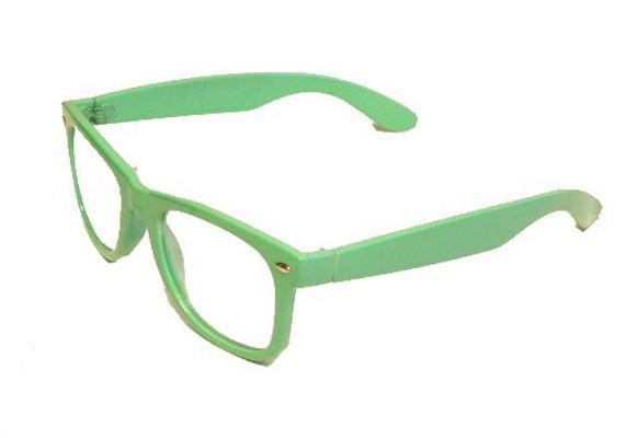 Aurinkolasit läpinäkyvillä linsseillä ja vihreillä kehyksillä