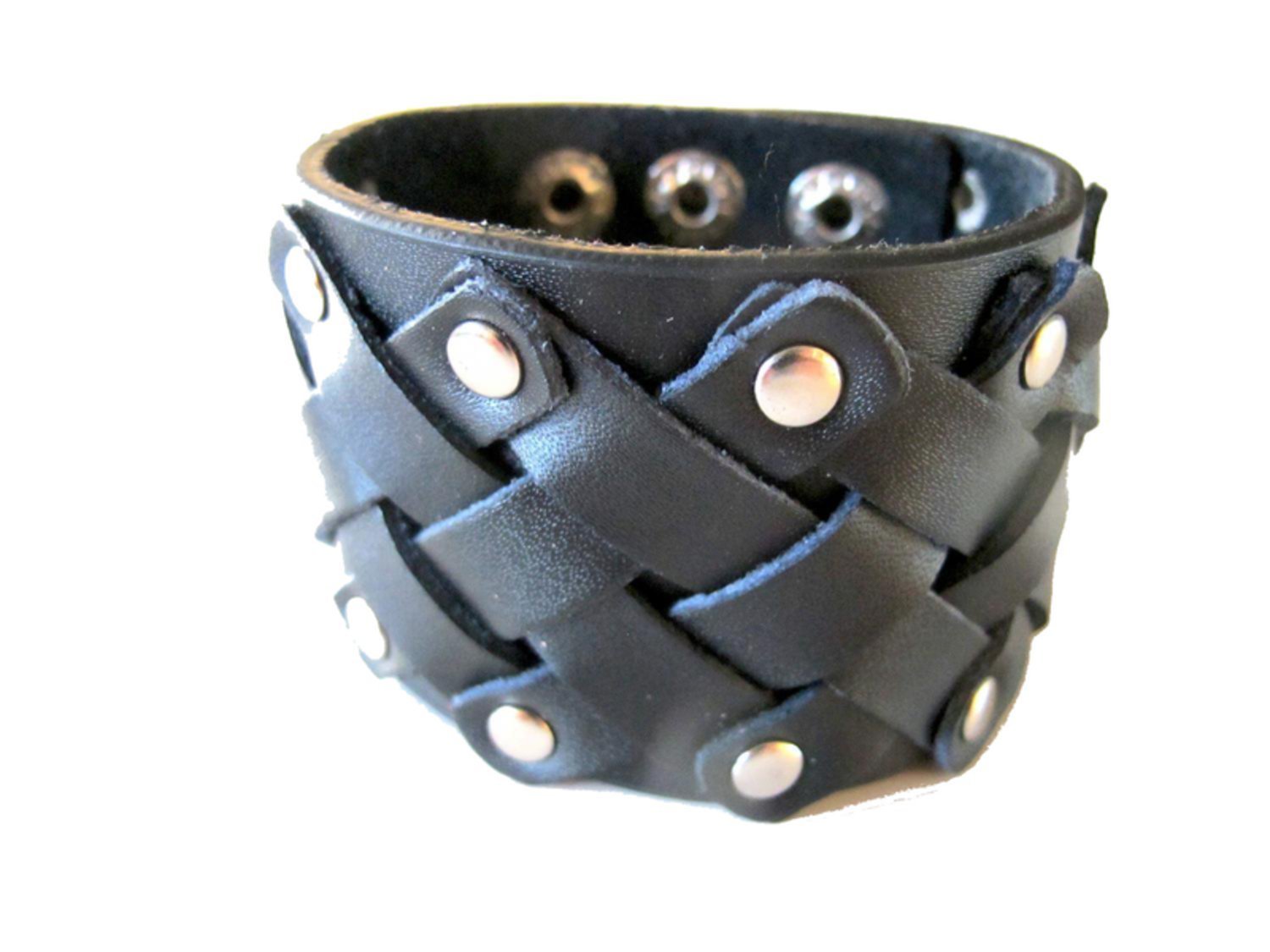 Musta nahkainen rannekoru hopeisilla niiteillä
