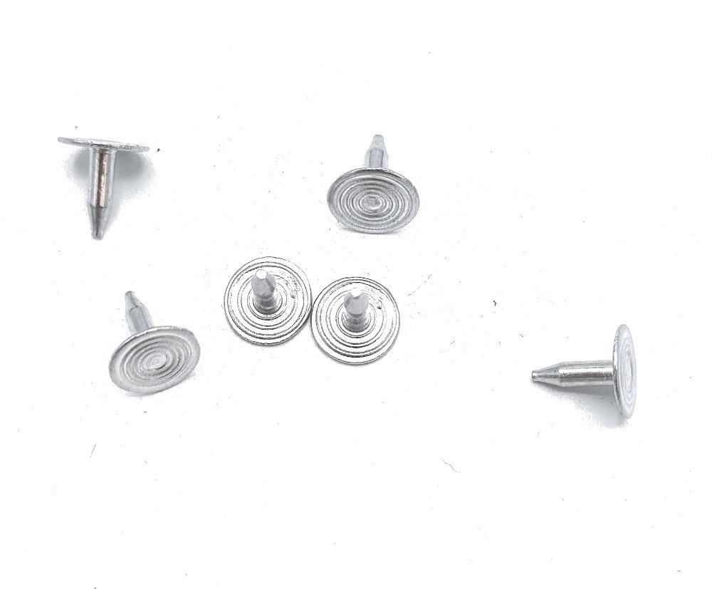 Ajat niitissä pienellä vasaralla. Tee ensin reikä nahkaan, kankaaseen - mihin aiot kiinnittää niitin. Reikä tehdään helposti naskalilla tai rei'illä, esim