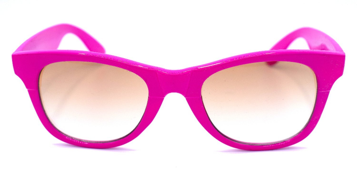 Lasit läpinäkyvillä linsseillä ja vaaleanpunaisilla kehyksillä