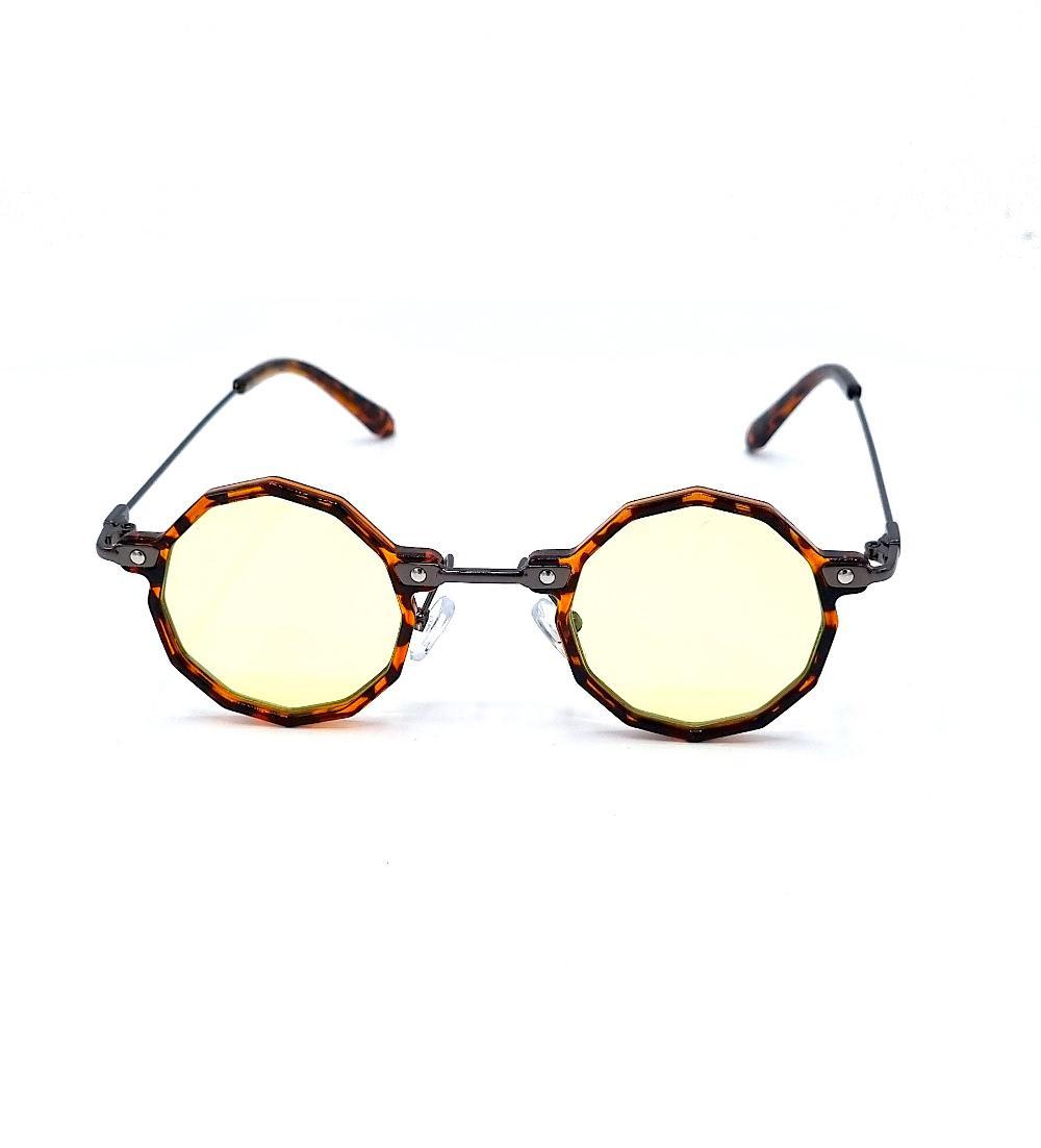 Pyöreät aurinkolasit - ruskea Leopard keltaisilla linsseillä