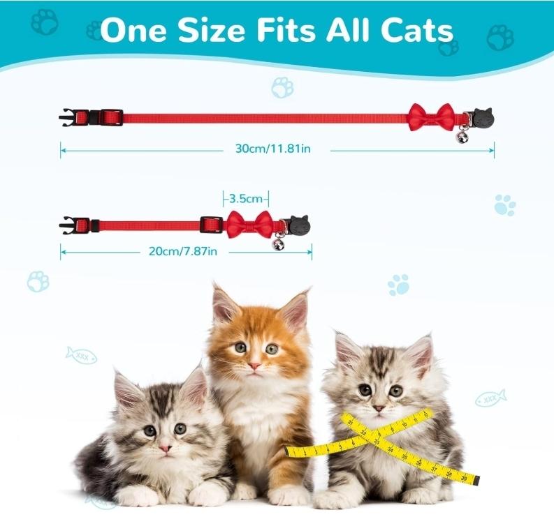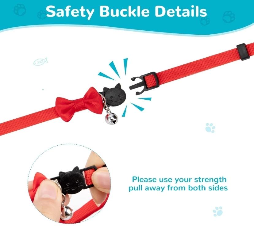 - Ominaisuudet : Säädettävä koko ja turvasolki, joka vapautuu painettaessa pitääkseen kissan turvassa