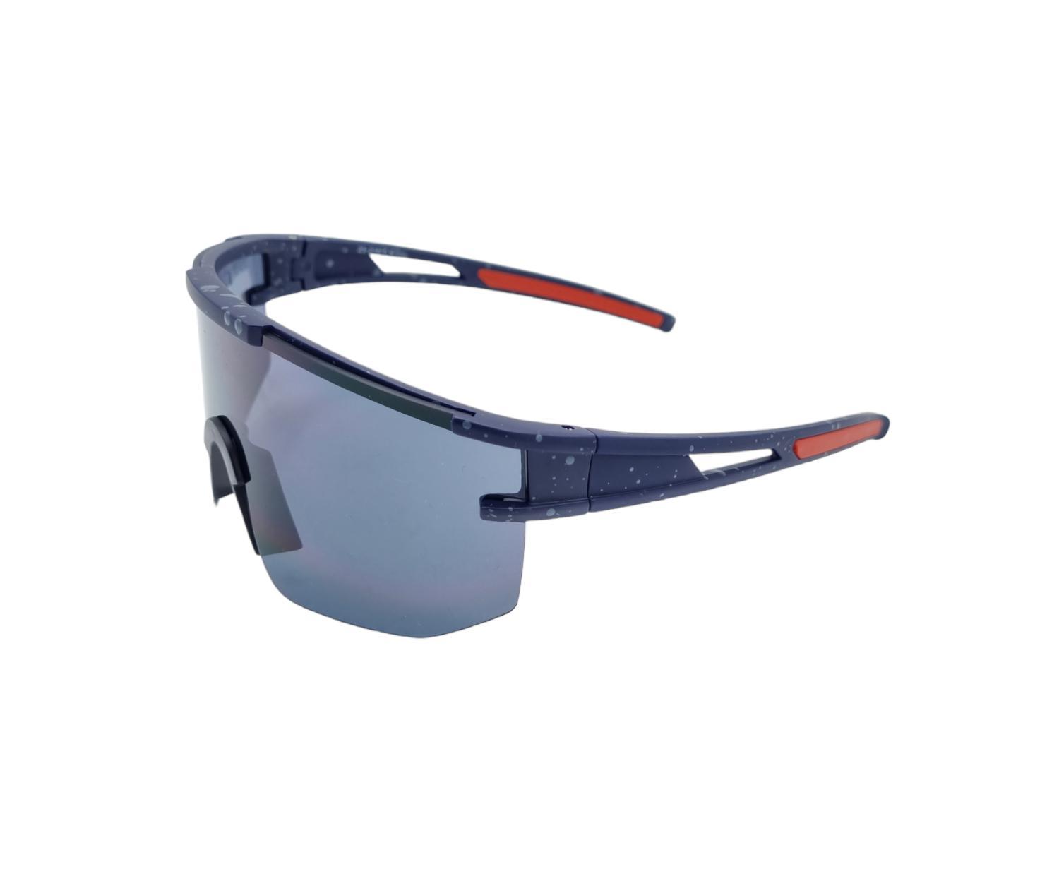 Urheilulliset mustat maastoaurinkolasit, joiden kehys seuraa kasvojen muotoa. Valmistettu kevyestä muovista, nenäkahva ja mukava lasi täysin suojassa.