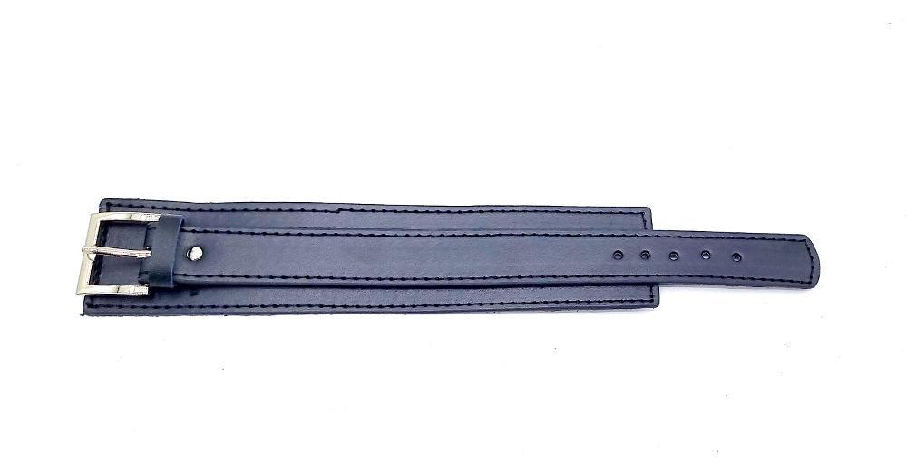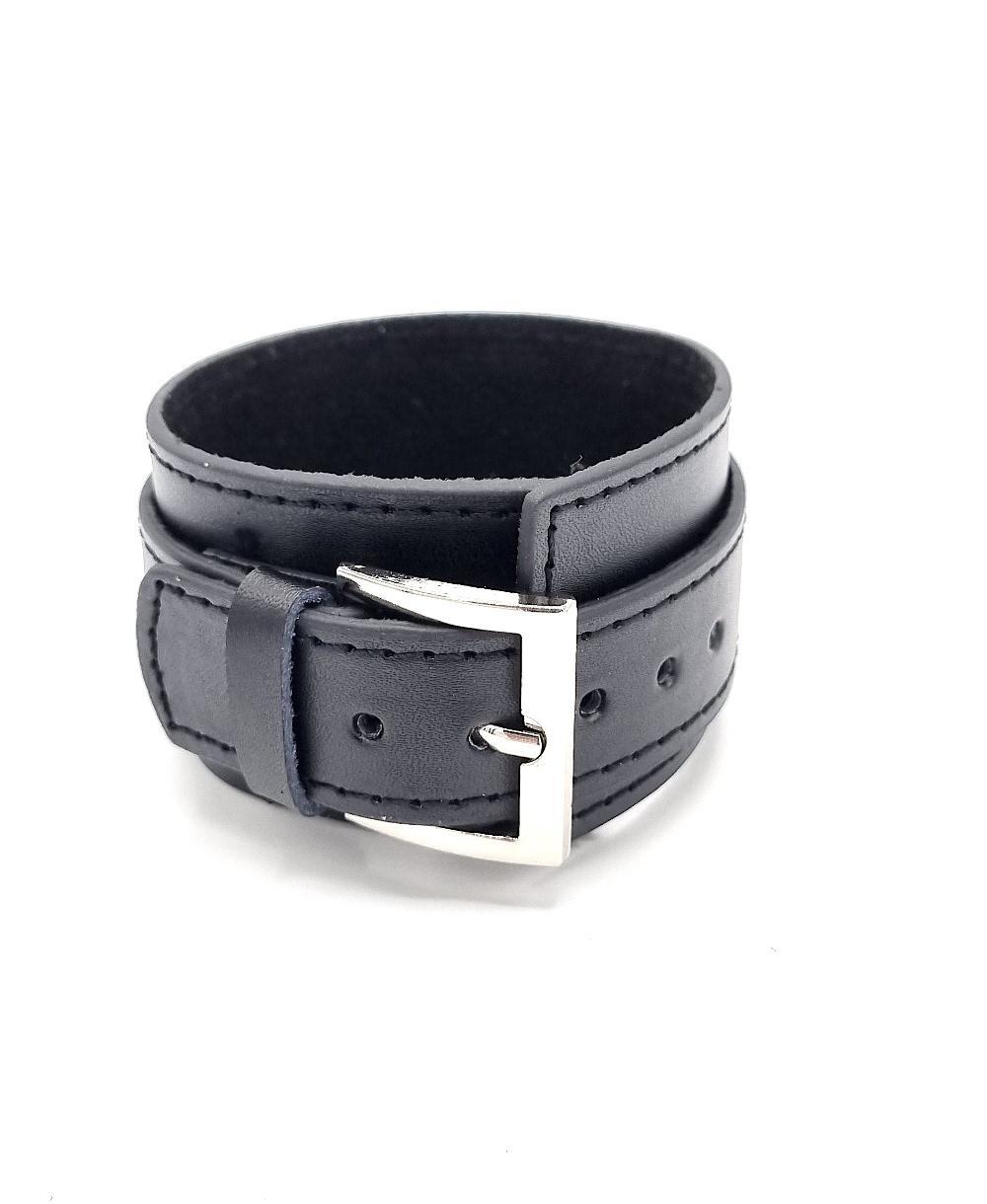 Musta keinonahkainen rannekoru soljella