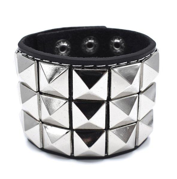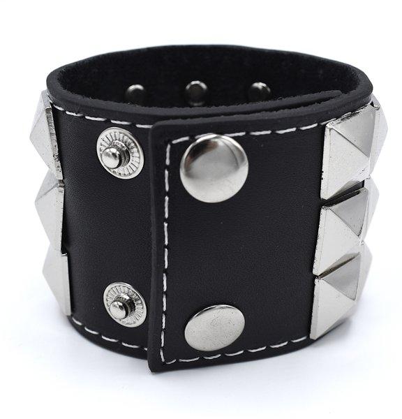Musta nahkainen rannekoru pyramidinapilla
