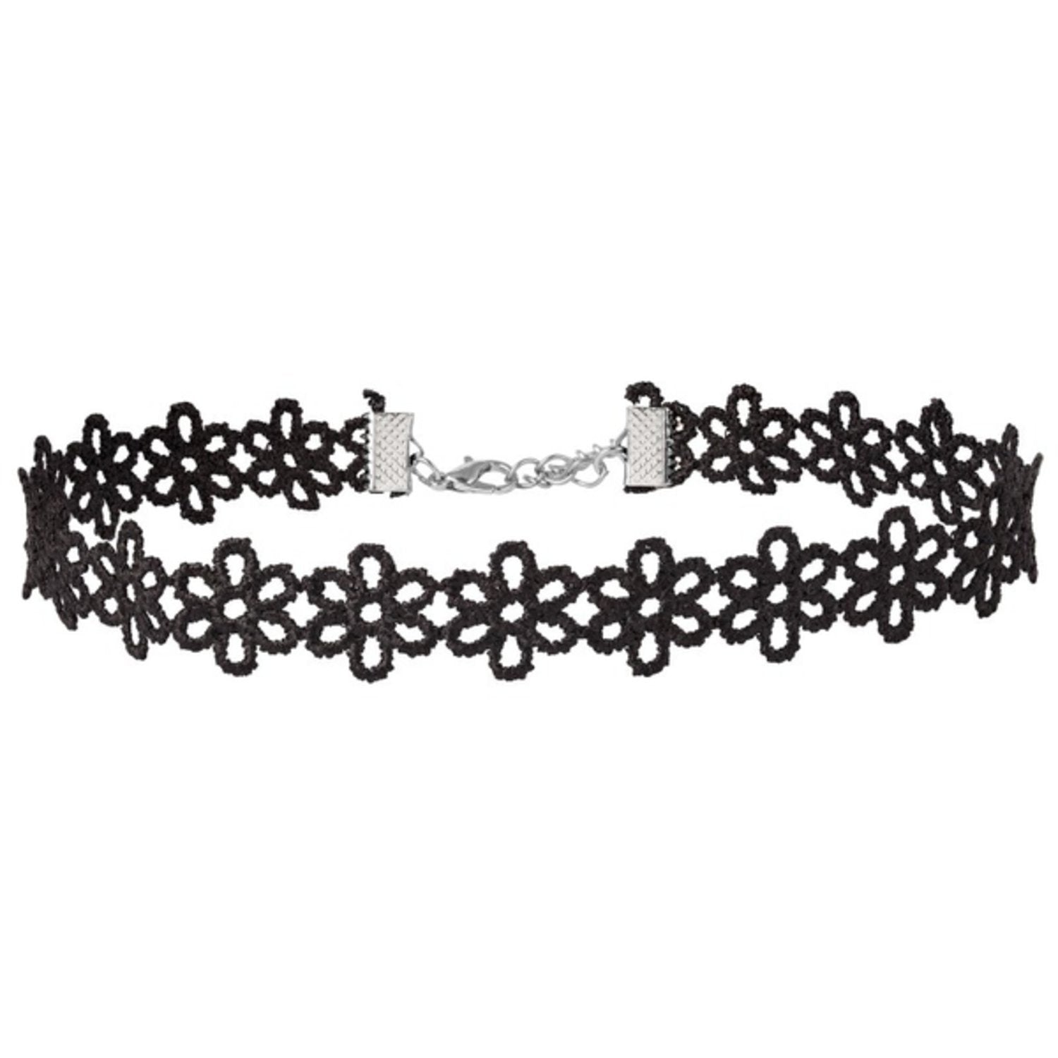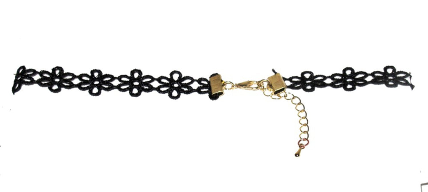 Black necklace in fabric that closes with a carabiner, the size can be adjusted.