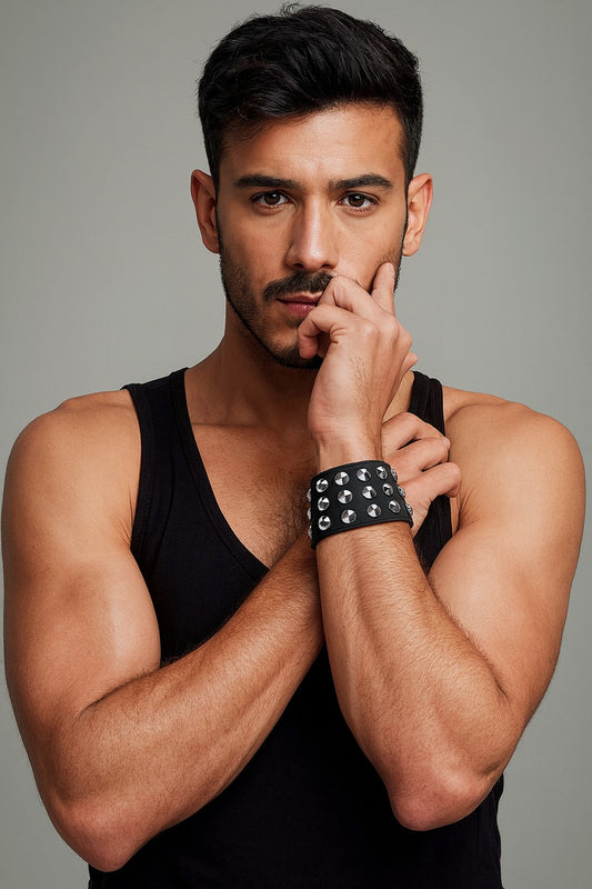 Nitarmband med 3 rader pyramidnitar – justerbart & rockigt
