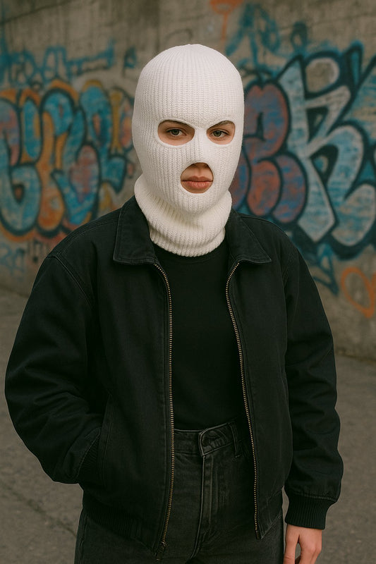 Vit Rånarluva – Stickad Balaclava med Attityd