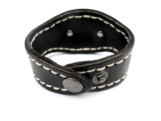 Svart läderarmband med dubbelsöm – Justerbart spänne