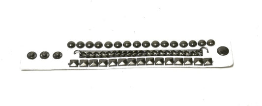 Vit Läder armband med kedja, pyramid- och runda nitar