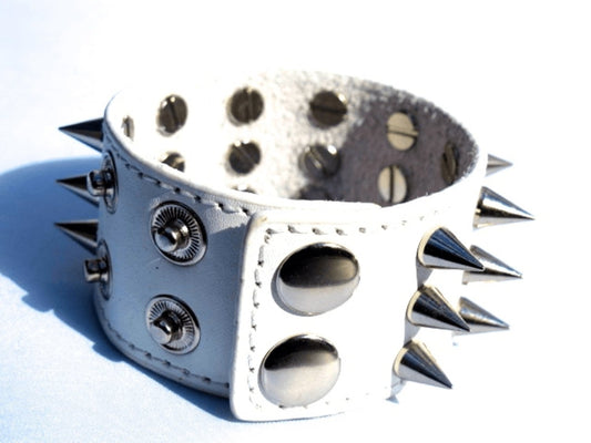 Vit läderarmband med silverfärgade nitar