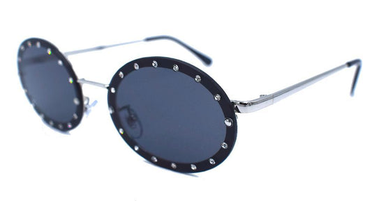 Bruna runda solglasögon med vita stenar - Ice Edition