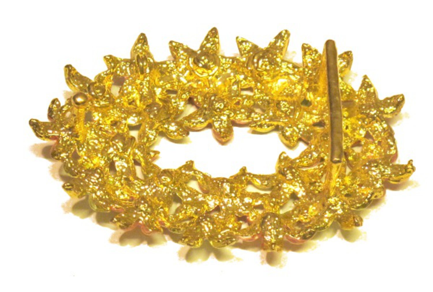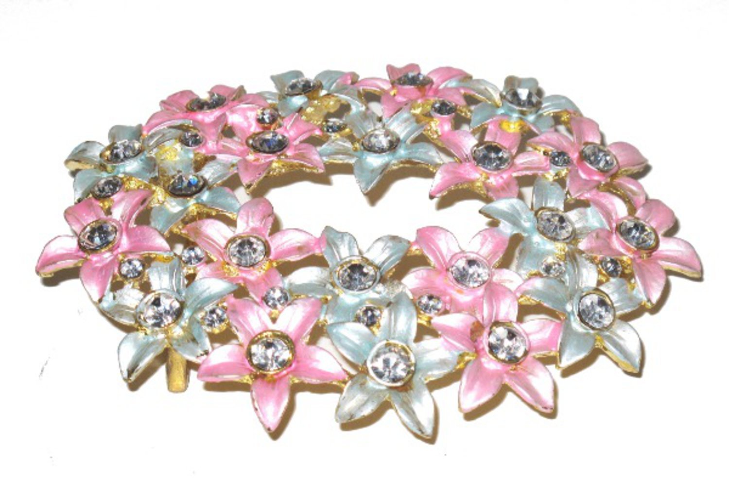 Bältesspännen med ljusblå och rosa blommor med vita stenar