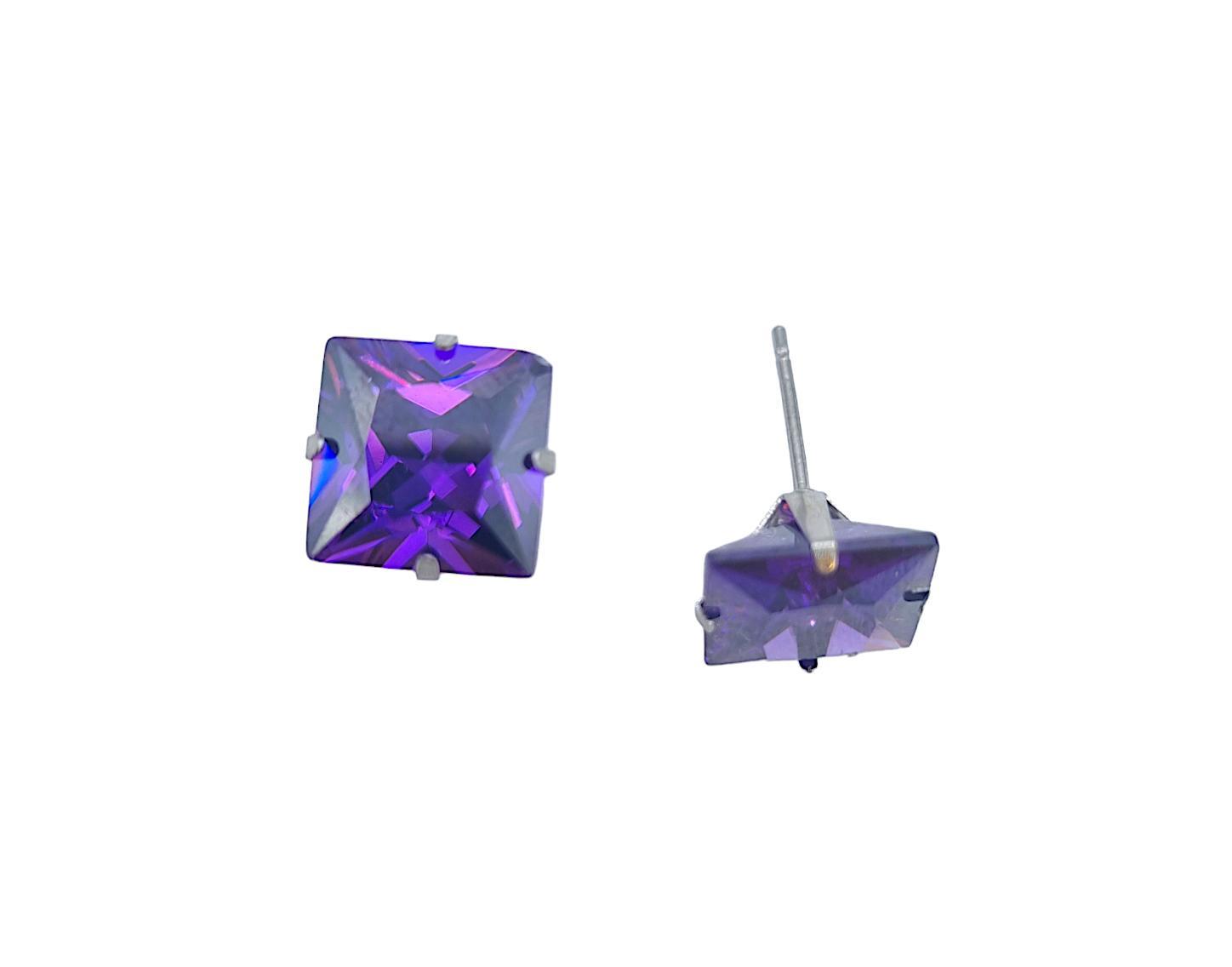 Silverfärgade örhängen (10 mm) med Lila Cubic Zirconia stenar