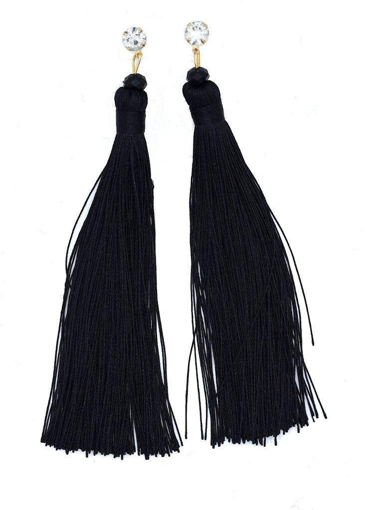 Långa fransörhängen – Hängande örhängen med fransar och vita kristaller.