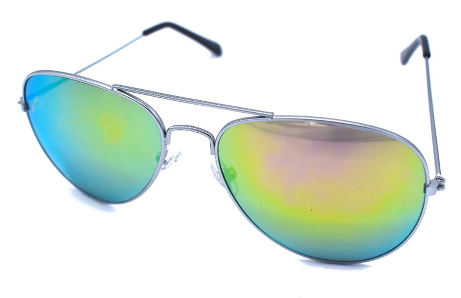 Pilot Solglasögon med silverfärgade bågar och spegel linser i grön/blå färg från märket KOST.