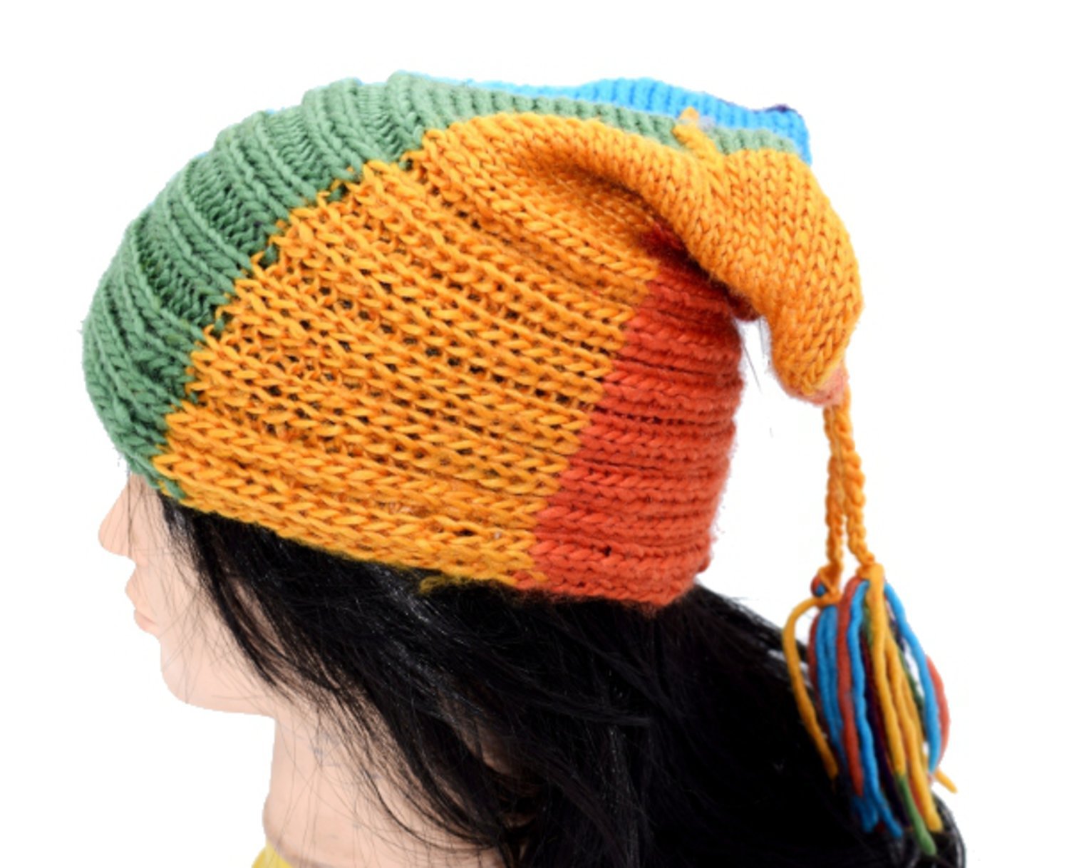 Stickad Färgglada mössa med öppning för hästsvans .