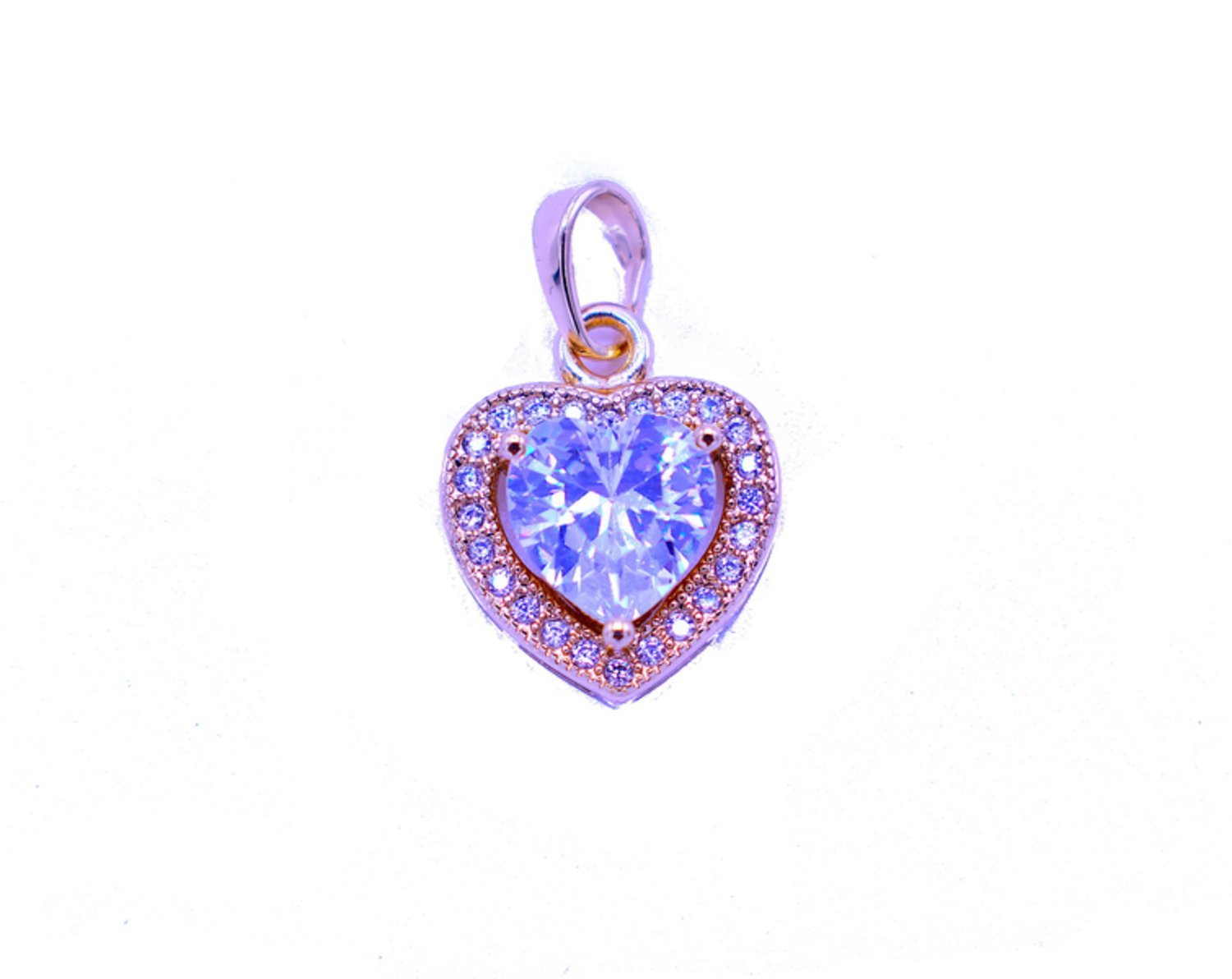 Guldfärgad medaljong i form av hjärta med genomskinliga kristaller