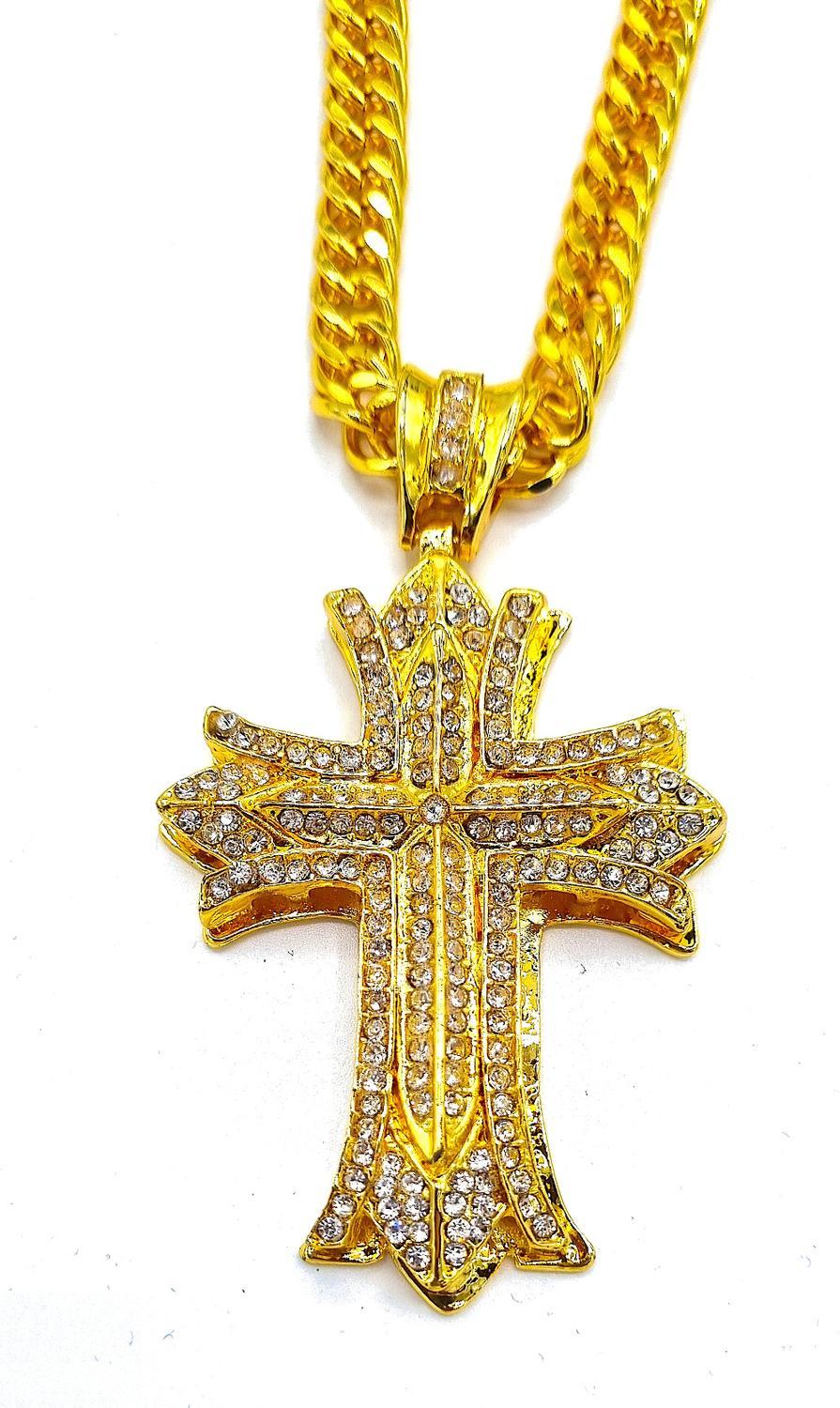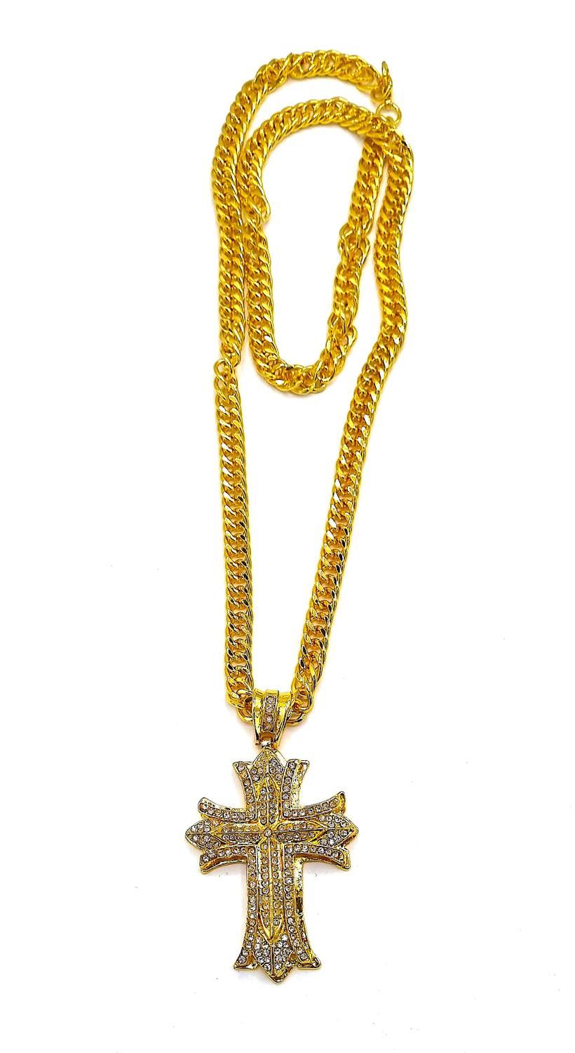 Guldfärgad kors halsband.