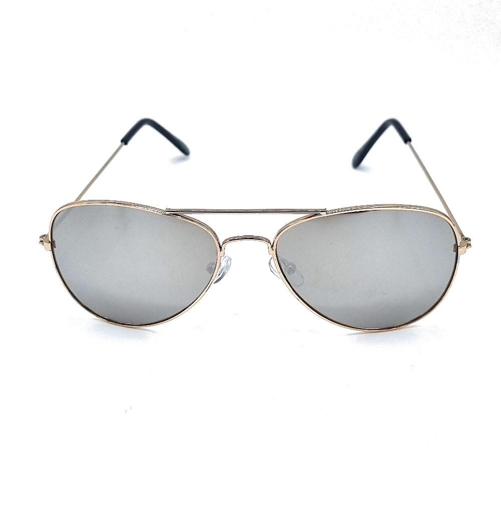 En klassisk vinklad, ovalformad båge med böjda kanter och en stor lins. Bågarna är av nickelfritt stål och färgade i silver med en spegellins.Var både trendig och skydda dina ögon samtidigt med dessa solglasögon. Denna modell är UV400-säkrad vilket innebär att den skyddar mot UV-ljus.