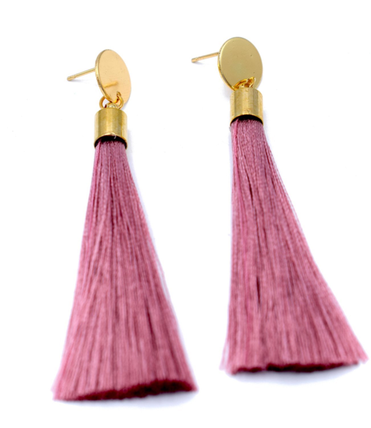 Långa fransörhängen – Hängande örhängen med fransar, finns i röd, blå, beige, rosa och blå med silvermetall.