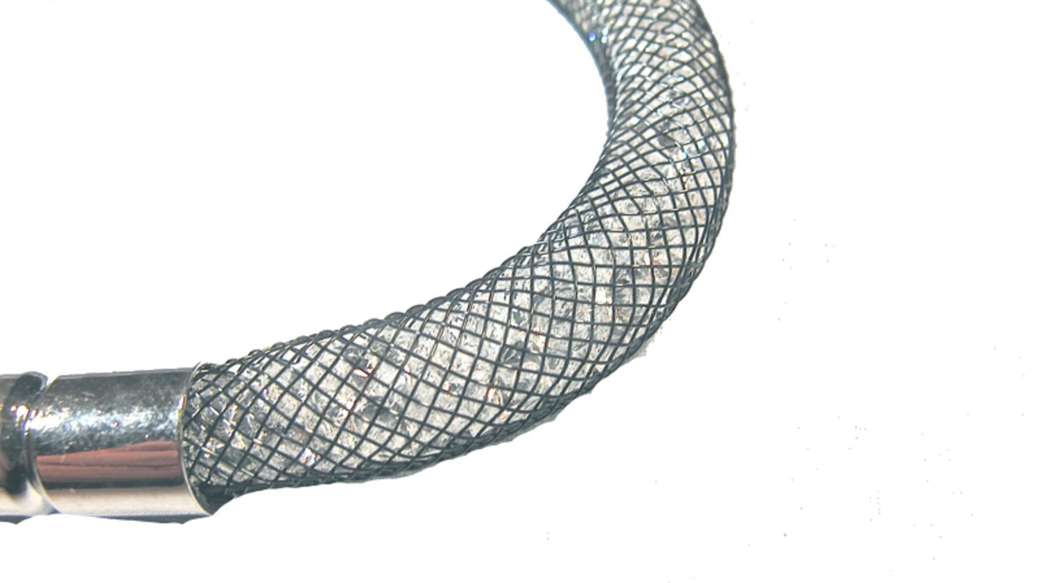 Armband av en svart nylon nät som är fylld med små vita kristaller. Lättanvänd magnetlås i metall.