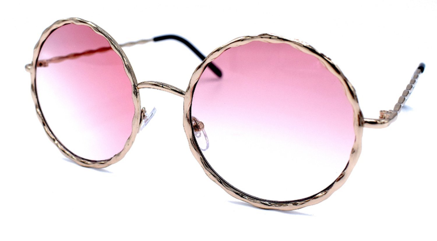 Runda halv transparenta solglasögon med "vågiga" guldfärgade metallbågar från märket KOST.